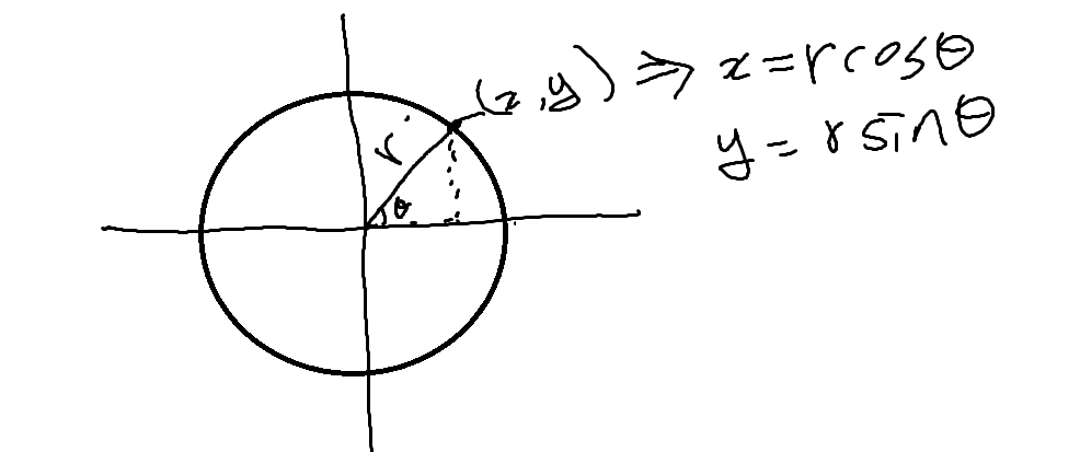 이렇게 원을 그렸을 경우 x, y좌표를 알수 있습니다.