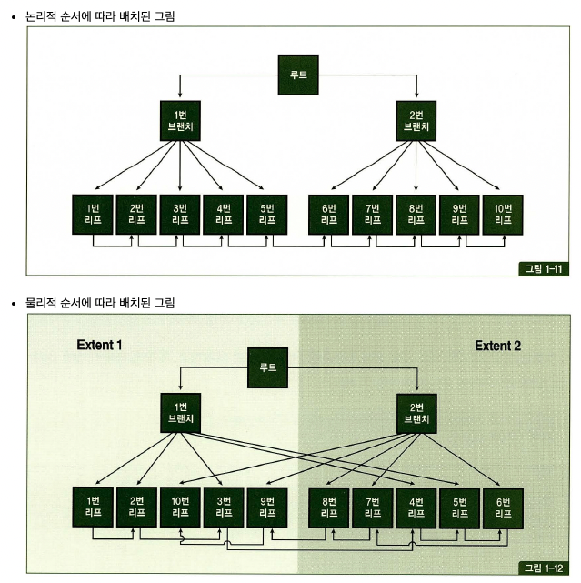 - 연결 리스트 구조를 무시한 채 데이터를 읽기 때문에 결과집합이 인덱스 키 순서대로 정렬되지 않는다.