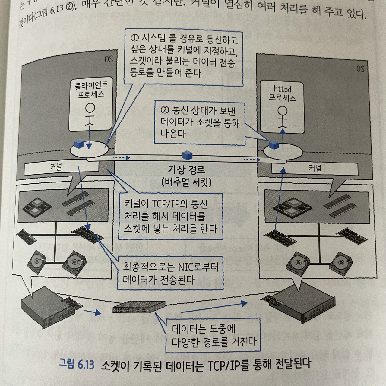 - 소켓에 기록된 애플리케이션 데이터는 소켓의 큐를 경유해서 '소켓 버퍼' 라는 메모리 영역에 처리(ip, 이더넷 까지의 처리도 이루어짐)