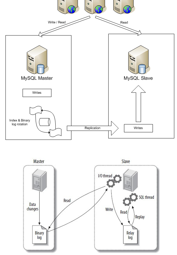 - 바이너리 로그 파일은 마스터 mysql 서버에 생성되고 릴레이 로그는 슬레이브 서버에 생성