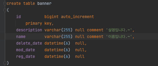 코드에 주석처리로 처리 할 수 있겠지만 DB에 설명이 있기 위해서는 코멘트를 적어야한다. (혼자 개발하는게 아니니까?)